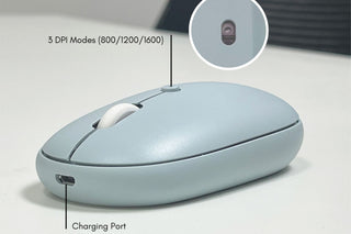 Equipped with silent silicone membrane buttons that reduce click noise by 90% and a DPI switch (800/1200/1600) for smooth and easy pointing and clicking.