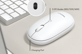 Equipped with silent silicone membrane buttons that reduce click noise by 90% and a DPI switch (800/1200/1600) for smooth and easy pointing and clicking.
