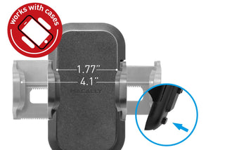 The cell phone cup holder can easily fit smartphones up to 4.1” wide with or without case. A quick release button also makes mounting and un-mounting your phone effortles