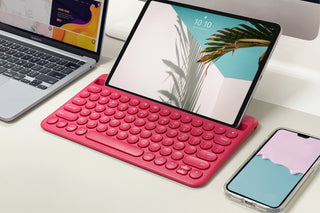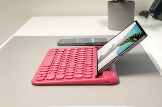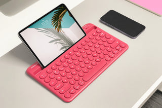Boost your productivity with the Mac portable keyboard with iPhone or iPad Holder (Viva Magenta). Featuring a compact, ergonomic design with USB-C connectivity and built-in arrow keys, it’s perfect for efficient data entry on the go.