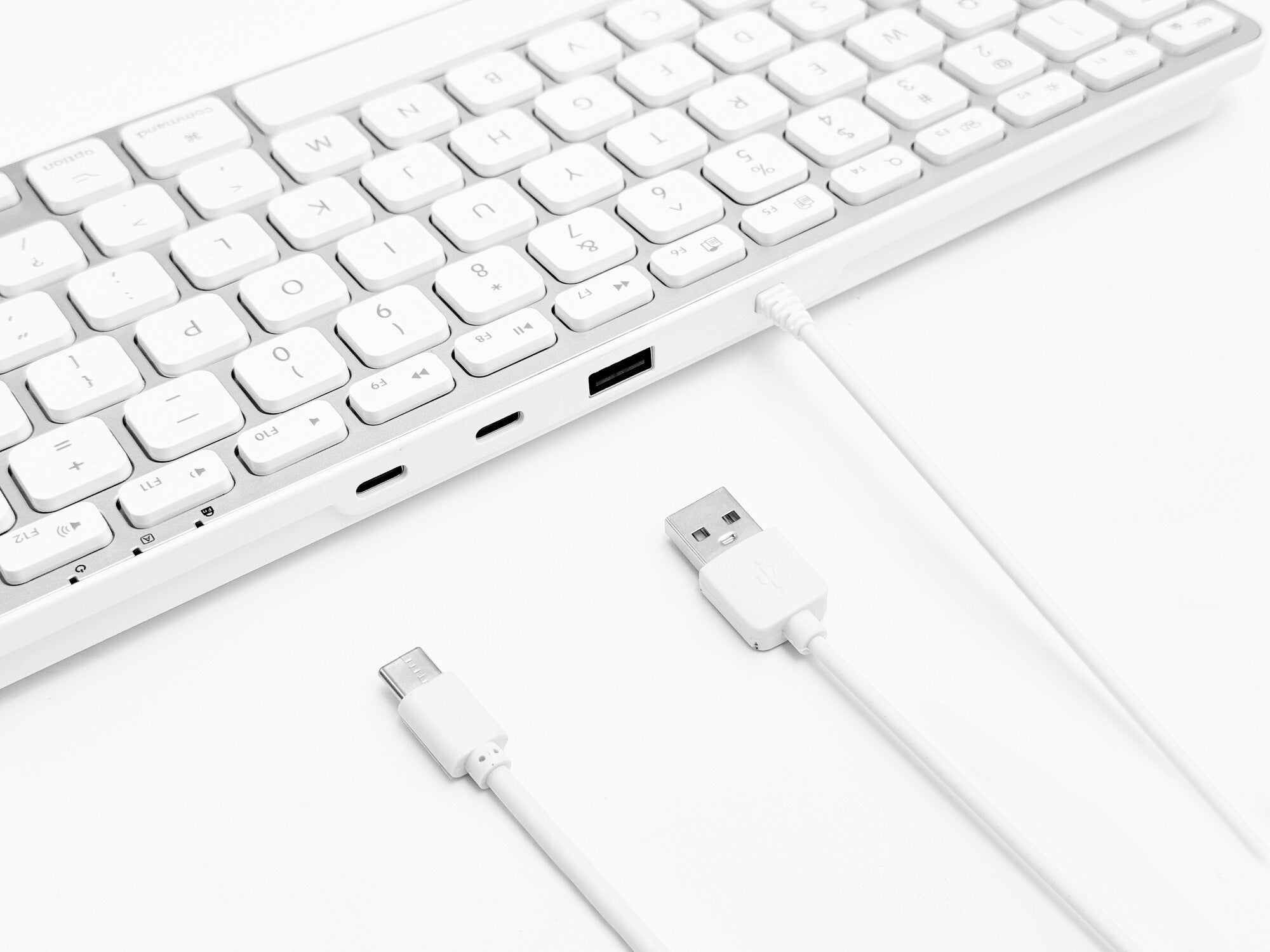 No charging. No input lag. No random disconnects when your Mac wakes from sleep. This keyboard connects through a single cable with a dual USB-C and USB-A plug — works with every Mac made in the last 15 years. No dongles, no adapters needed.