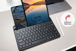 Enjoy seamless multi-device use and switch between 3 devices simultaneously with our wireless keyboard for tablet or smartphone, computer, tv, and etc.
