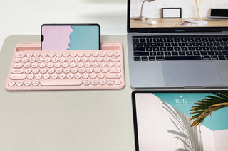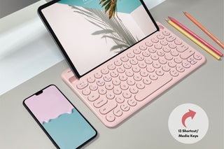 Mac Portable Keyboard with iPhone or iPad Holder (Pink)