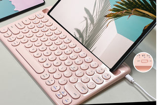 Work efficiently anywhere with the Mac portable keyboard with iPhone or iPad Holder (Pink). Compact and ergonomic, it offers USB-C connectivity and built-in arrow keys for smooth data entry and seamless device support.