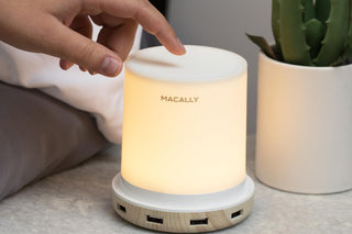 Equipped with SMART IC charging technology, the lamp protects your devices from overcharging and short circuits, ensuring a peaceful and worry-free night's sleep.