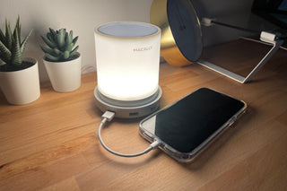 The small, compact lamp eliminates the need for extra chargers and outlets, keeping your nightstand tidy and organized